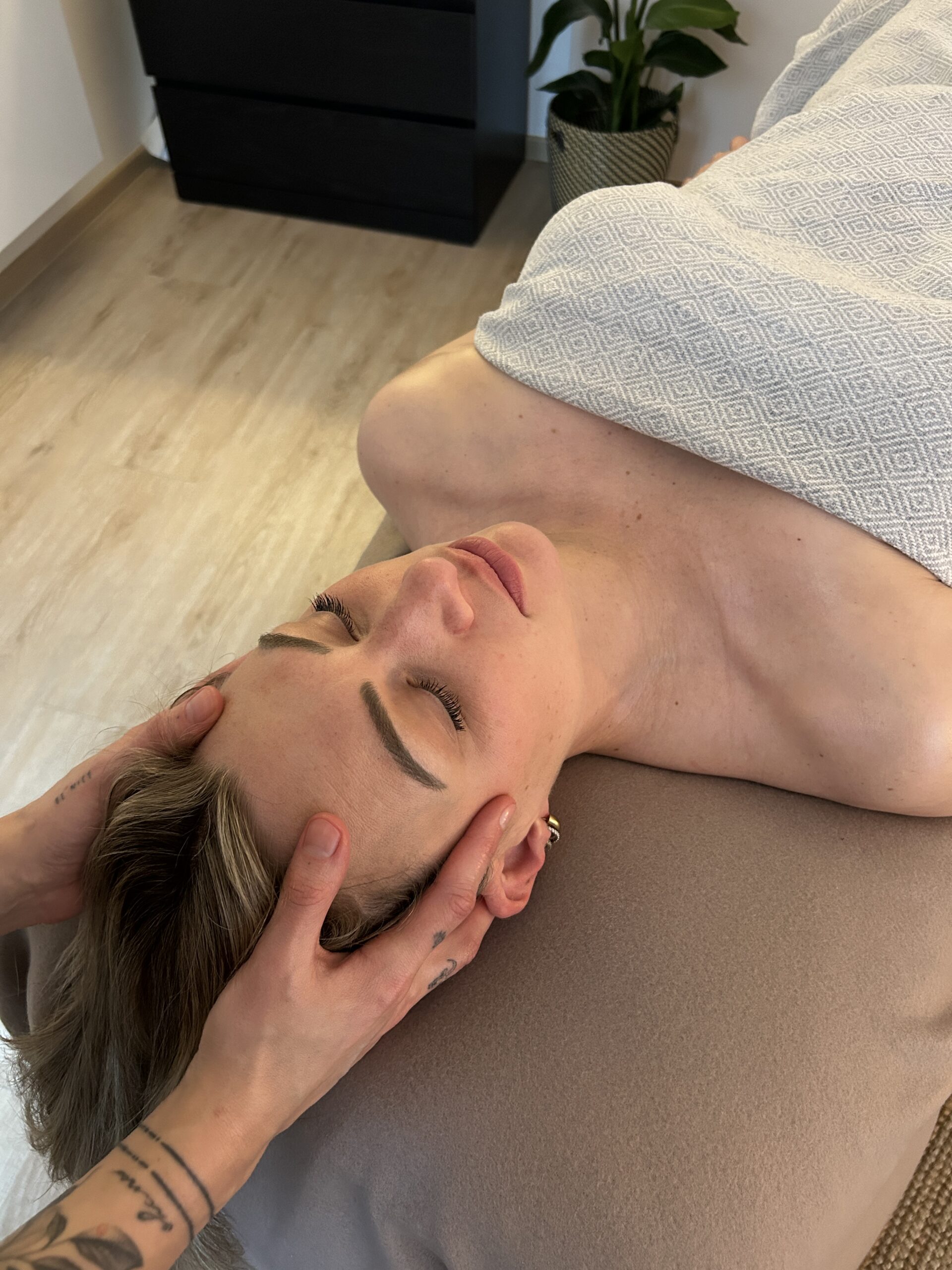 Während die Maske einwirkt, geht die Entspannung für dich weiter: Du wählst selbst, was dir in diesem Moment guttut – eine beruhigende Handmassage, eine sanfte Nacken- oder Schulterbehandlung, eine wohltuende Kopfmassage oder ein paar Minuten Gesichtsentspannung. Hier zählt nur, was du brauchst.